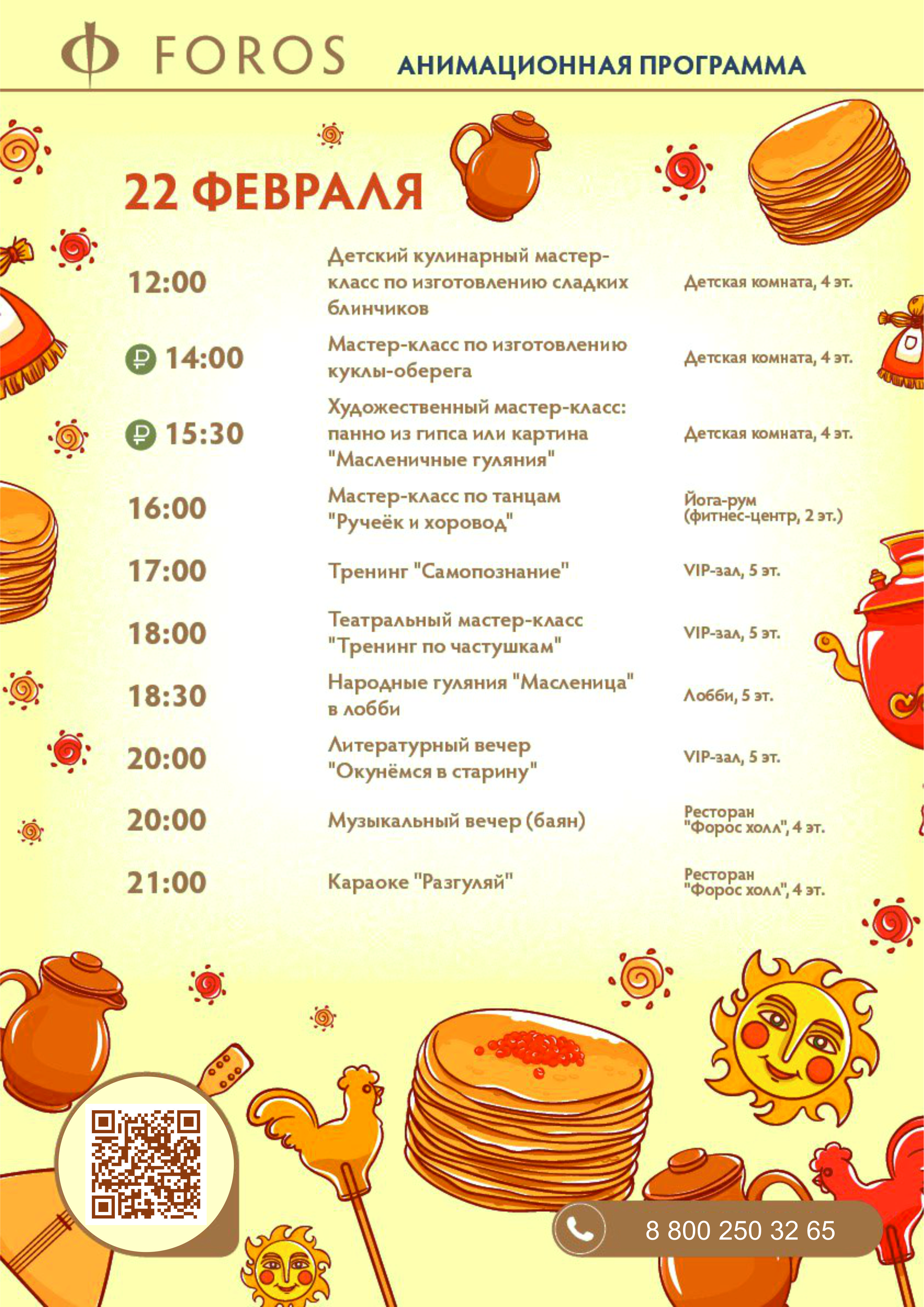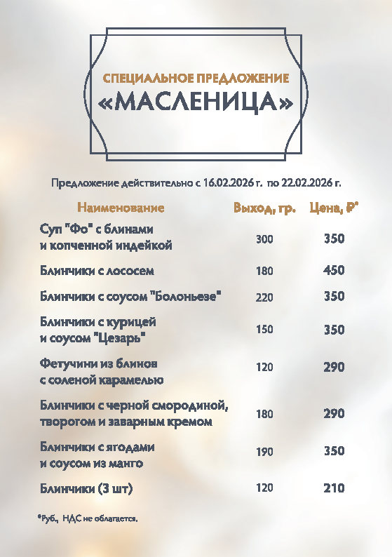 Специальное меню в ресторане Foros Hall на Масленицу